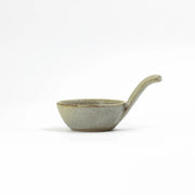 Handcrafted ceramic dip bowl with an elegant handle, finished in a soft matte grey glaze.