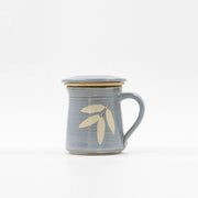 A serene ceramic infusion mug set in satin blue, designed for slow tea rituals. Complete with a built-in strainer and lid, it blends thoughtful functionality with handmade elegance.